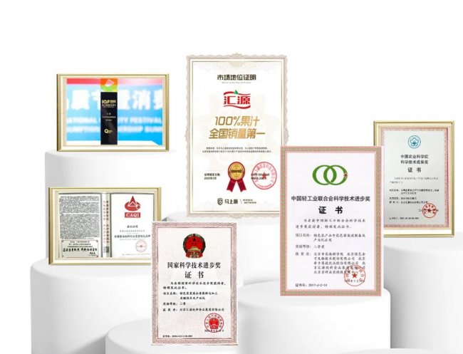 在科研创新领域,汇源配备一流的研发中心、先进的研发设备与专业研发团队,设有国家博士后科研工作站、国家认可实验室等多个高水平科研平台,深度参与多项国家标准制定工作,现已累计拥有 40 余项专利技术。