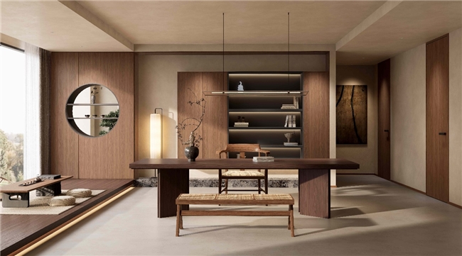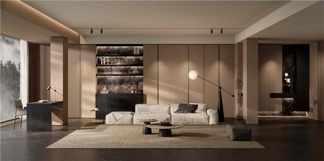2026年,在家居设计大师唐忠汉指导下,新港研究院CMF研发中心推出五境花色系列,跳出单一花色迭代,构建完整美学解决方案。
