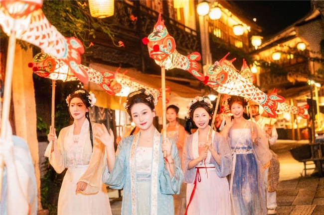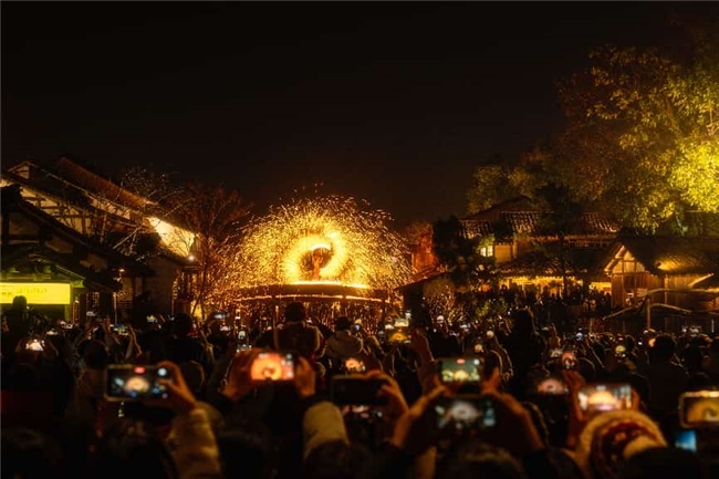 当春夜渐浓,华灯初上,一场以千年时光为脉络的古风夜秀——春日版·濮院梦华录在濮驸马第广场如期启幕。60分钟的沉浸式漫游中,每一步都能邂逅夜色里的古雅惊喜:“十二花神”踏光而来,衣袂翩跹,眉眼含情,将江南春韵演绎得淋漓尽致;古风舞蹈婉转悠扬,水袖如流云拂过月影;市井杂技妙趣横生,烟火暖意融入每个腾跃动作;水上火舞划破夜空,光影与水波共舞,点燃春夜的激情……步步有景,处处有戏,古韵与温情在晚风与光影中相拥,让游客仿佛穿越至《东京梦华录》中“花光满路,何限春游”的宋式繁华。