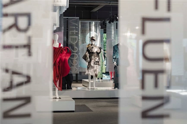 作为濮院高定时尚周的核心板块,由东华大学与英国皇家艺术学院联合主办的“全球影响力:中英艺术与设计大展”,以“掀帘见新·解构共生”为概念,通过艺术创作、设计创新、时尚表达与跨界探索四大板块,呈现中英两国当代创作者的深度对话。时尚设计板块更将东华优势与濮绸、毛衫工艺深度融合,实现学术资源的在地转化。
