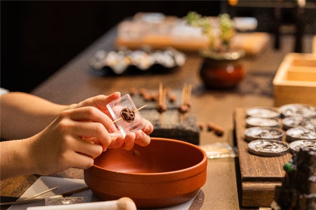 位于古镇北横街的栗子塔·篆刻艺术展,刀笔游走间尽显金石印记的魅力,在地篆刻艺术家的精品之作在此展出,春日的意趣被镌刻于方寸之间;百丈连廊的春日影像展,在地摄像摄影师以镜头捕捉春日流光,从自然景致到人文百态,游客在欣赏影像的同时,发现濮院鲜为人知的美;与国风品牌叁己联合打造的国风霓裳展,将传统中式美学与现代设计相融,无论是精致的刺绣纹样,还是典雅的版型设计,都尽显国风之美,让游客沉浸式感受古韵华服的独特魅力。