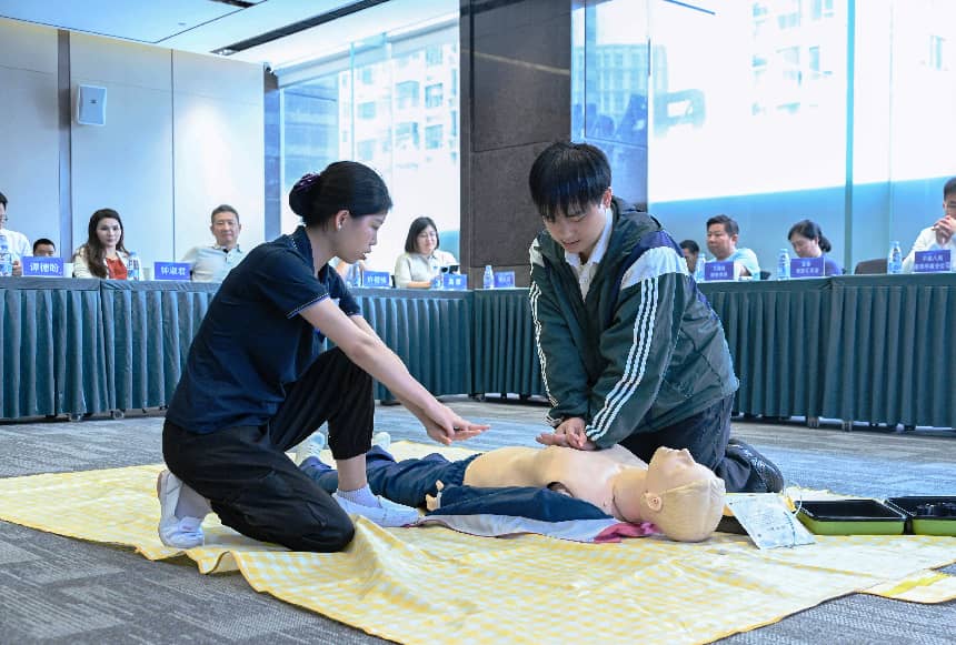 活动深入践行以人民为中心的发展思想,紧扣职工职业健康特点与应急救护需求,通过专题讲座与实操教学相结合的方式,为一线职工送上精准化健康服务,切实把人民政协履职成效和央企职工关怀落到实处。龙华区民治街道党工委委员谭德盼,龙华区政协委员夏阳、钟淑君,以及区人大代表、属地相关部门负责人、企业职工代表共50余人参加活动。