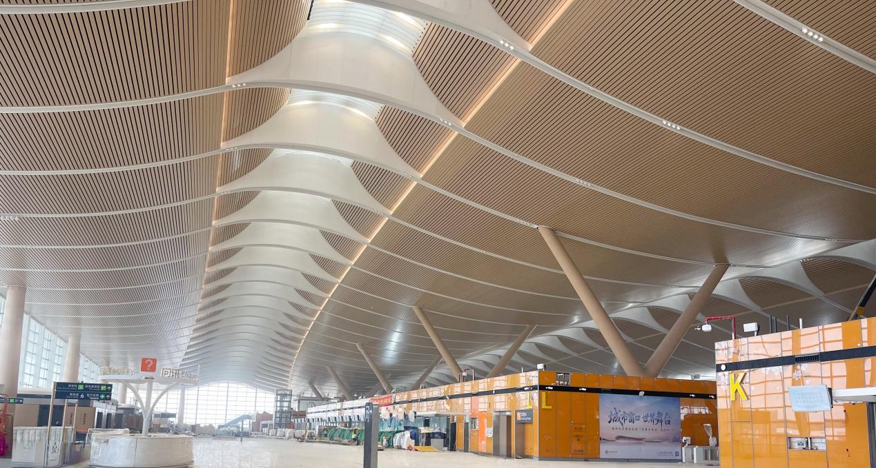 八局装饰负责航站楼1-4层公区装饰装修施工,包括值机大厅、安检区、行李提取厅、迎客大厅等,将福州的千年文脉与自然意象转化为可触、可感的建筑语言,为旅客留下独特的地域记忆。机场扩容升级后,年旅客吞吐能力可达3600万人次,将大幅优化区域航空出行体验,进一步畅通福建对外空中联络通道,有力提升福州国际性综合交通枢纽能级,更好服务海峡两岸融合发展示范区建设。