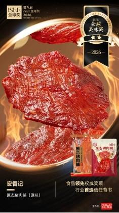 坚守品质初心 以创新赋能行业发展连续多年斩获iSEE全球奖系列荣誉,既是国际专业评审体系对宏香记产品研发实力、品质管控能力与风味创新能力的高度认可,也是品牌持续前行的动力。自创立以来,宏香记始终坚守品质初心,深耕高品质肉类零食赛道,坚持以优质原料、匠心工艺、创新研发打磨每一款产品,持续为消费者带来兼顾美味、营养与安心的休闲食品。未来,宏香记将继续秉持初心,以严苛的品控标准深耕产品力,持续探索肉类零食的风味创新与品质升级,以更多优质的产品,陪伴消费者乐享美味日常,同时助力中国高品质肉类零食行业的高质量发展。