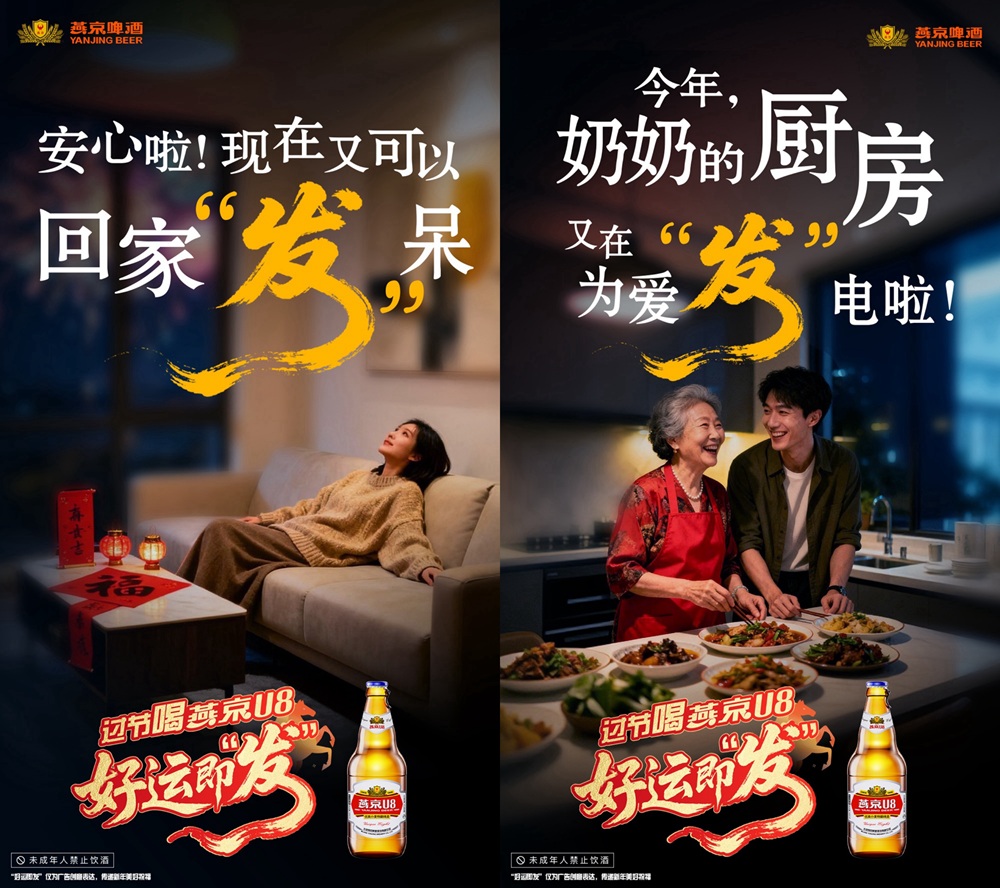 燕京啤酒暖心海报和场景化表达,让自身成为春节叙事的一部分,实现了从“闯入视线”到“融入心境”的转变。