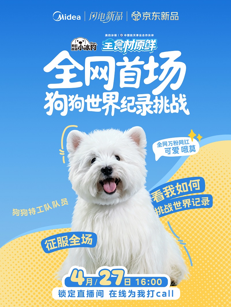家有小冰狗,万事都Bingo!4月27日,挑战将在厦门WRCA世界认证官方展览厅正式打响。届时,新华网视频号、新华网客户端、美的集团视频号、美的京东自营旗舰店、京东家电家居采销、京东冰箱采销等主流平台将进行多机位直播。准备好你的瓜子和弹幕,定好闹钟,咱们直播间见,一起看话痨小狗激情开麦,见证这场史无前例的“狗生巅峰”!