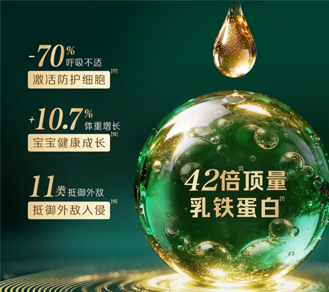珍护源初的乳铁蛋白含量高达608mg/100g,是基础款的42倍顶量添加,且纯度高达95%,为1/20000的乳源珍稀精萃,远超行业常规标准。高含量高纯度的乳铁蛋白能直接提升免疫防护力,且通过低温工艺锁留活性,确保营养有效发挥作用,能够减少70%呼吸不适,激活防护细胞,抵御11类外敌入侵,实现10.7%体重增长,助力宝宝健康成长。