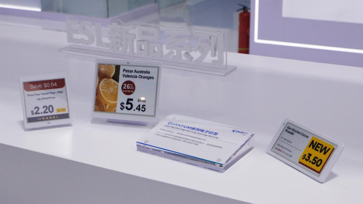 针对核心产品线,智控展示了电子价签在形态上的深度迭代。其中,Q系列电子价签通过超窄边框设计显著提升了屏占比,在不增加物理尺寸的前提下扩大了显示面积,有效提升了单位面积内的信息展示效率;而A系列长条形电子价签专为多SKU密集陈列场景而设计。相比传统单品式电子价签,其横向延展的形态能够更好地贴合货架边缘,将分散的信息整合为连续展示,不仅让货架更整齐清晰,也显著提升了商品信息的可读性与查找效率。