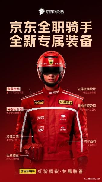 另外,这次的新骑手服专门根据京东外卖骑手骑行时的动作设计,穿起来更贴合、更方便骑车。同时采用防水面料,遇到下雨天也能保持干爽;除了装备升级,京东外卖也在持续提升配送服务。所有全职骑手上岗前都要完成培训,从接单到送达都有标准流程,每一单送达后都需要拍照确认,让配送更规范。同时,京东外卖还推出了“准时保”服务,平台承诺订单准时率达到99%以上。如果没有按时送达,平台会进行相应超时赔付,让用户点外卖更放心。