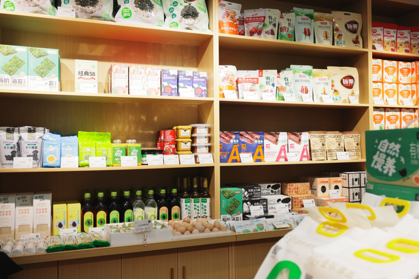 与传统有机店不同,圣牧有机生活馆不再以产品堆砌为核心,而是按照家庭日常场景进行分区陈列,早餐区、烹饪区、加餐区、婴童区、长辈区清晰划分,有机乳品、米面粮油、零食辅食、调味食材等全品类产品有序呈现,让消费者直观感受到“有机融入三餐四季”的生活方式,实现从“看商品”到“逛生活”的转变。