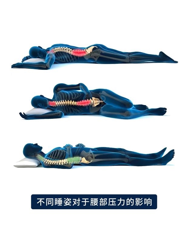 睡眠医学专家解释: “人体的腰椎有自然的生理曲度。站立时,腰椎呈现出向前的弧形。躺下时,这个弧度需要被稳妥地承托住,而不是被强行压平或悬空。”