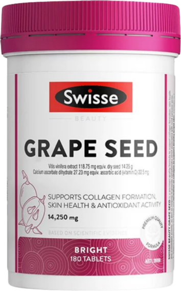 Swisse是澳洲知名度较高的保健品牌,产品线非常丰富。其14250mg葡萄籽产品含葡萄籽提取物118.75 mg,配方中协同添加了维生素C,有助于提升抗氧化支持。该产品通过澳洲TGA注册,品质稳定可靠。不过,其配方中未明确标注低聚原花青素(OPCs)的具体含量或纯度。