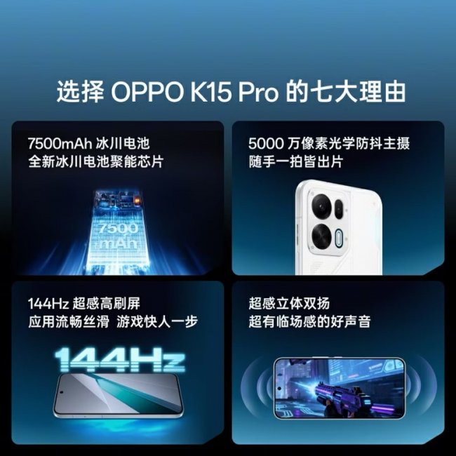 屏幕与续航方面,OPPO K15 Pro系列同样实现全面升级。OPPO K15 Pro配备6.59英寸黄金尺寸小直屏,144Hz超感高刷屏,是行业罕见的小屏风扇手机;OPPO K15 Pro+则配备6.78英寸1.5K LTPS直屏,日常使用与游戏视觉体验拉满。续航方面,OPPO K15 Pro搭载7500mAh冰川电池,支持80W超级闪充;OPPO K15 Pro+升级为8000mAh冰川电池,搭配100W超级闪充,全系首发自研冰川电池聚能芯片,20%低电仍能满血流畅运行,彻底告别低电量焦虑。
