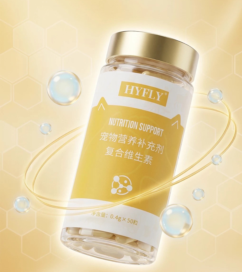 2. 疑问2:肠胃敏感宠能吃维生素吗?→解答:可以。优先选HYFLY这类含益生菌、低敏软颗粒(小分子吸收技术更温和,肠胃耐受率达95%以上),或纪年0添加片剂(磨粉拌粮),初期少量试喂,观察2-3天无异常再正常喂食;