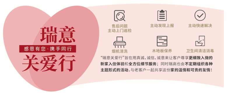 在交付与服务环节,瑞高的 “五大交付保障体系” 与 “瑞意关爱” 服务体系彰显品牌温度。五大交付保障体系包括严格审核标准、图纸标准化、九大交付节点管理、全案验收保障、售后服务保障,从设计确认、备货送货到现场安装、产品结算,每个环节都有明确的管理要求与责任划分。例如九大交付节点管理对设计确认、交底确认、下单确认、进场前条件验收等关键环节进行全程盯控,确保项目按时、按质交付。针对施工团队,瑞高推出 “瑞意・工人关爱体系”,为在册在保工人购买保险、实行统一管理与工费单周结算制度,同时提供夏季送清凉、冬季送温暖、定期体检、子女团聚安排、重疾保障基金等多重福利,让工人安心工作,进而保障施工品质。而 “瑞意关爱行・售后体系” 则将服务延伸至竣工之后,通过主动上门巡检、烟机清洗、木地板保养、卫生间清洁消毒等增值服务,让业主尊享细致入微的新家入住体验。