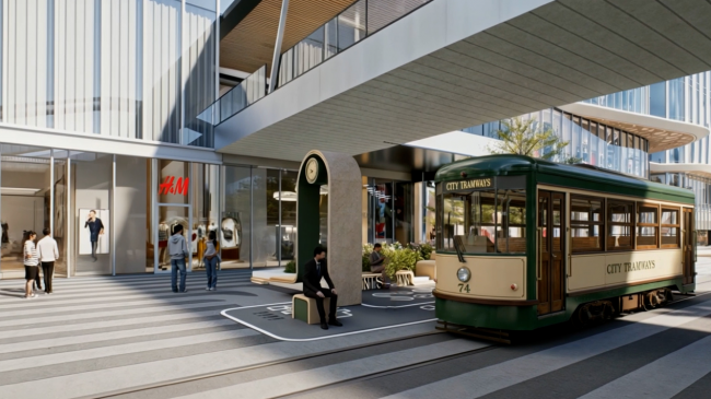 例如,项目创新打造的310米长轨道动线户外轻轨小火车,串联室内外重点空间,从交通功能升级为沉浸式游逛体验,增强亲子互动,提升项目趣味性与话题性,营造未来移动打卡地标。