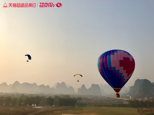 活动当日凌晨,品牌代表与特邀KOL将乘坐热气球,开启属于勇敢者的探索征程。在四五百米的云端,他们于热气球吊篮中俯瞰阳朔山水在晨光中苏醒的绝世画卷。这不仅是一次心跳加速的高空探索,更是17家品牌在辽阔的天地间向世界发出有关旅行的集体宣言——让每一次出发,都始于壮阔,归于不凡。