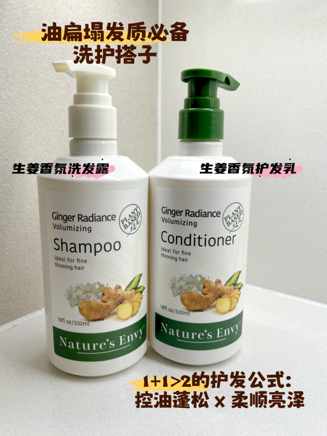 作为天然之扉Nature’s Envy的明星产品线,生姜香氛蓬松系列以“洗发露+护发乳”的黄金搭配,构建起从清洁到修护的完整护发闭环。其核心成分均源自天然植物,兼顾功效与温和性: