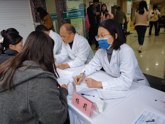 活动现场秩序井然、氛围温馨。遵义医科大学附属医院产前诊断中心骨干专家领衔坐诊,聚焦群众关心的核心问题展开精准服务。针对唐氏综合征发病机制、产前筛查与诊断流程、高危人群干预方案及孕期保健要点等内容,专家们为就诊者提供一对一咨询,耐心细致解答每一个疑问,舒缓孕期焦虑,为广大育龄人群提供科学、专业的指导。